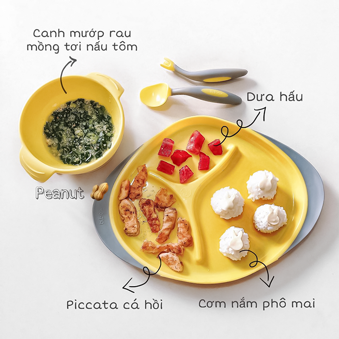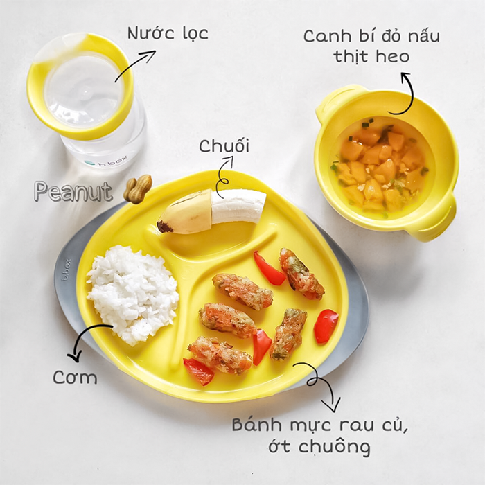 "Từ hồi bạn Peanut bắt đầu ăn dặm đến nay, mình đã sử dụng qua kha khá các món đồ ăn dặm cho bạn. Mục đích là muốn thu hút sự tò mò và hứng thú của bạn, tạo cho bạn những giờ ăn vui vẻ và không nhàm chán. Đến thời điểm hiện tại, Peanut ăn uống khá là hợp tác và chủ động. Mình nghĩ rằng, đồ đựng thức ăn, muỗng, ly và cả yếm ăn dùng cho bạn cũng ảnh hưởng đến sự hợp tác của bạn trong ăn uống!