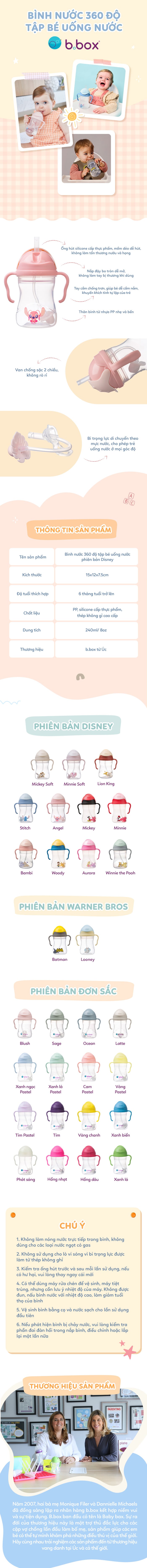 - Bình nước 360 độ b.box có thiết kế bi trọng lực đặc biệt giúp bé hút được nước từ mọi tư thế đi, đứng, nằm, ngồi.